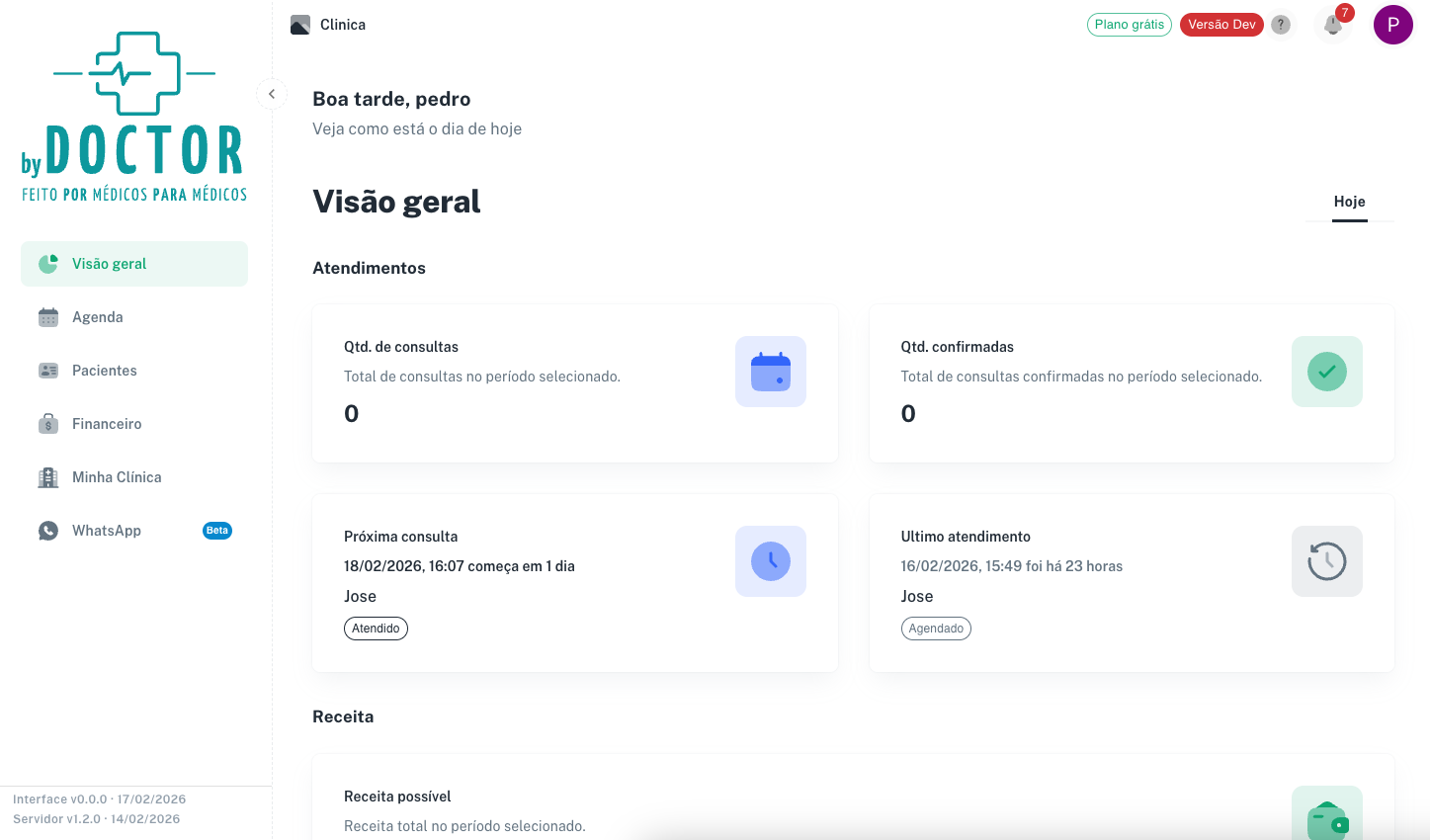 Agenda, prontuário, prescrições, financeiro e WhatsApp integrados. Simples, completo e feito por médicos para médicos.